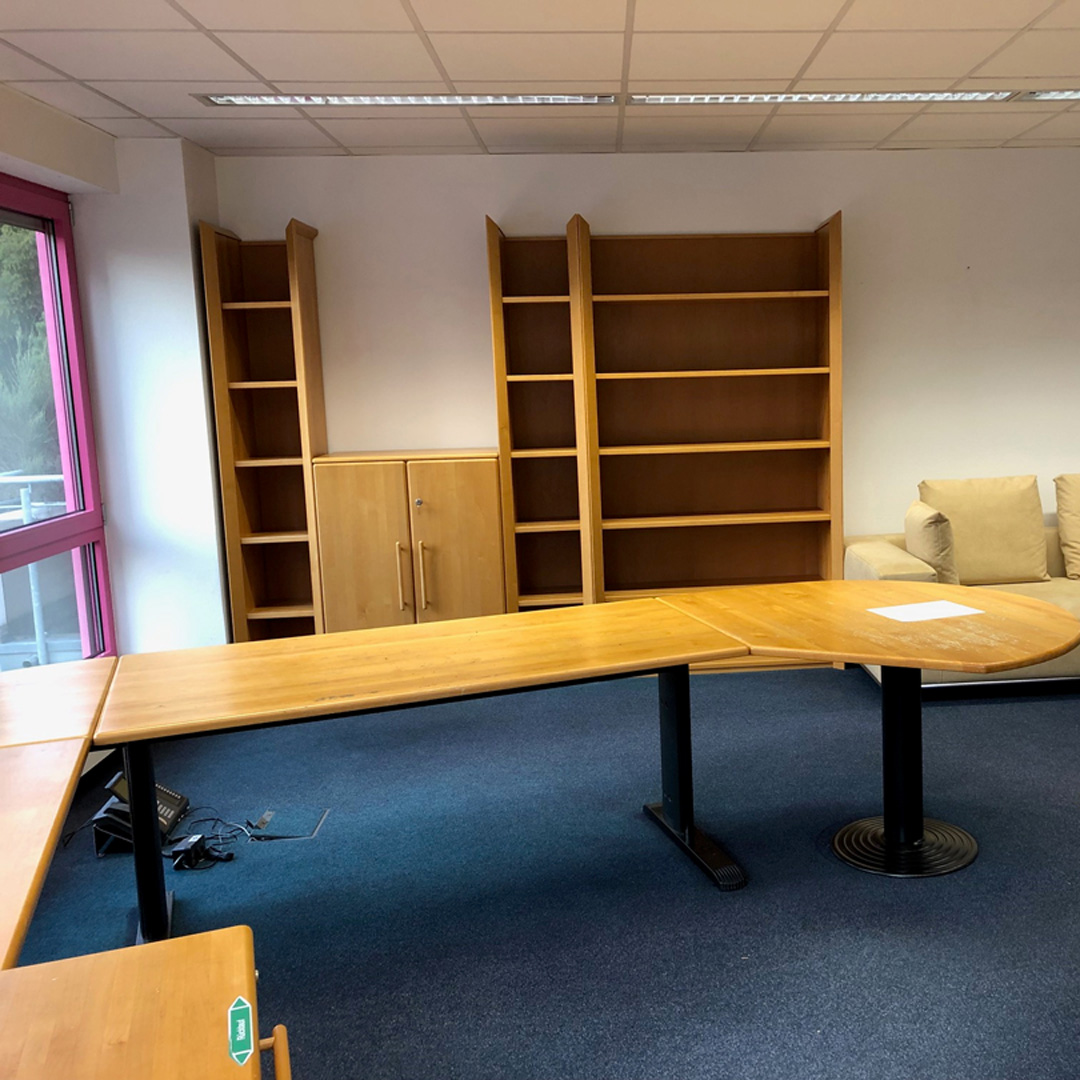 Anspruchsvolle Bodenbelagsarbeiten mit Intarsienarbeiten, farblich passend zur neuen Büroeinrichtung. Schwarzer Fries: Object Carpet, Panneau: Moooi Carpets.
