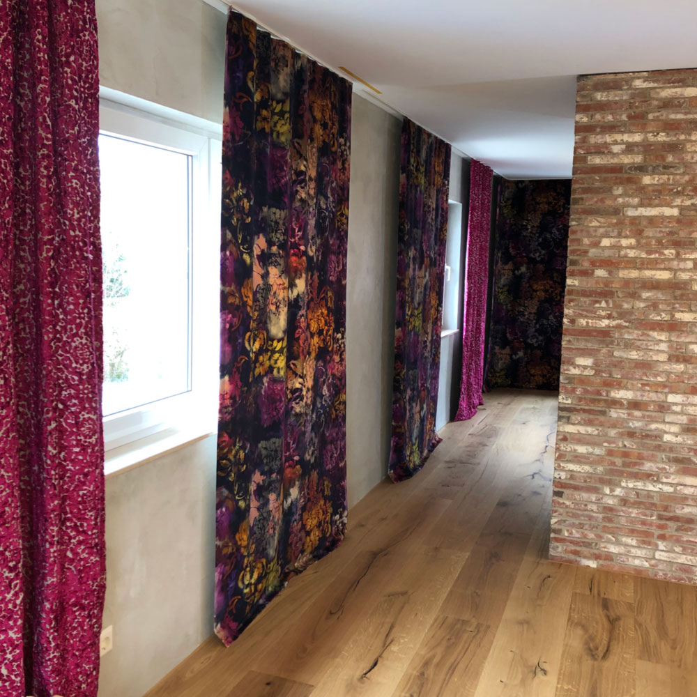Herstellung, Lieferung und Montage von farblich aufeinander abgestimmten Vorhangschals.