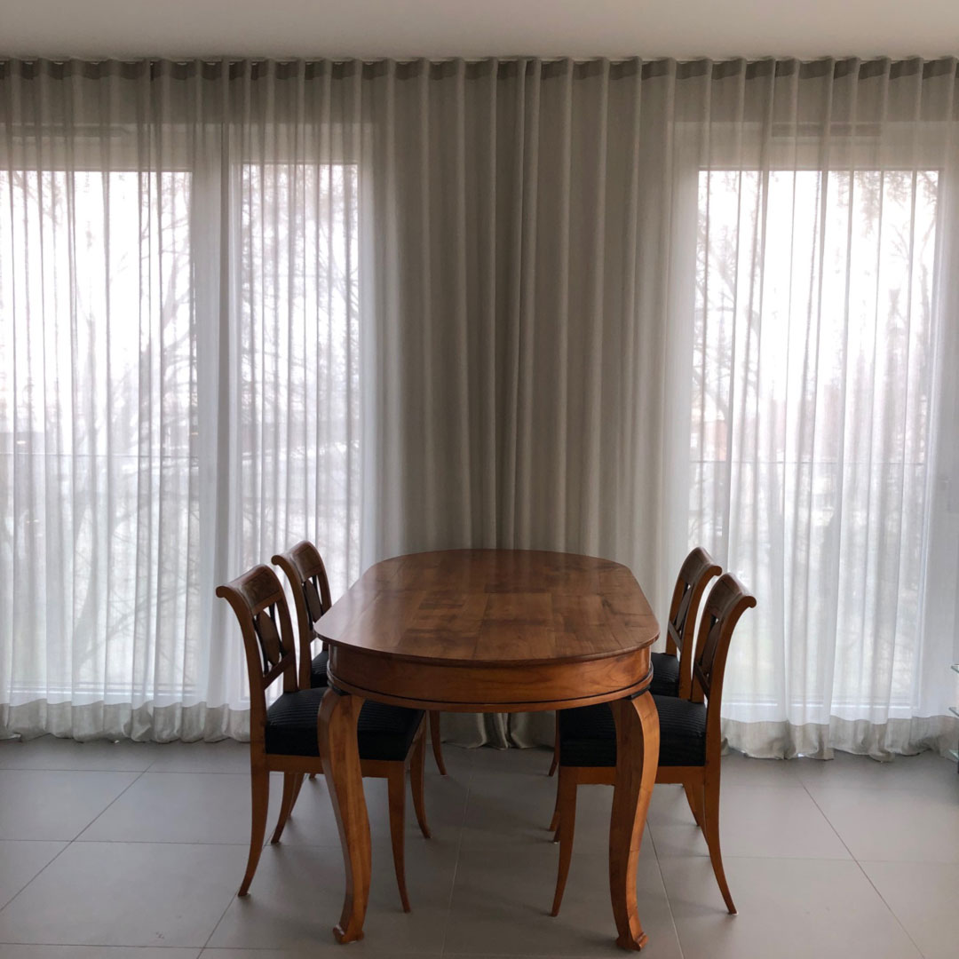 Der Wiederholungstäter. Nach dem Umzug in die neue Wohnung durften wir unserer Stammkundin erneut natürliche Wohnraumtextilien aus 100% reiner Wolle anbringen. Artikel Fino vom Textilverlag Nya Nordiska ist hier unschlagbar in seinem weichen und sehr fliessenden Fall. Der Vorhangstoff trägt eine Eleganz, ist als Naturfaser natürlich matt in seiner Erscheinung und hat einen einzigartig angenehmen Griff. So verleiht der Vorhang dem Raum eine wohlfühlige Wärme, ohne dick aufzutragen. Textilien, vom Fachmann verarbeitet und montiert, machen einfach Freude.