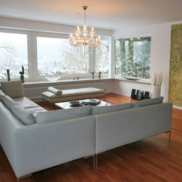 Lieferung, Herstellung und Montage einer neutralen, dezenten Fensterdekoration.