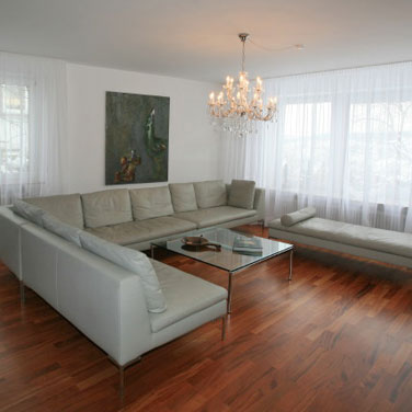 Um vom modernen, auf Kunst basierendem Wohnkonzept in der Villa nicht abzulenken, wählten wir weiße, transparente Vorhänge. Sie sorgen für eine ruhige, gemütliche Atmosphäre, lenken nicht von der Kunst ab und trüben die wundervolle Aussicht auf die Dächer der Stadt nicht.