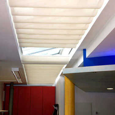 Zu Bild 2: Blendschutz für den Kassenbereich durch eine horizontal gesteuerte Plafondanlage.