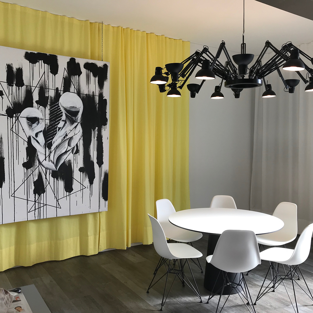 Beratung, Planung, Ausführung. Möblierung, Küche, Kunst, Beleuchtung, Akustikvorhang, Raumteiler und Bodenbelag.