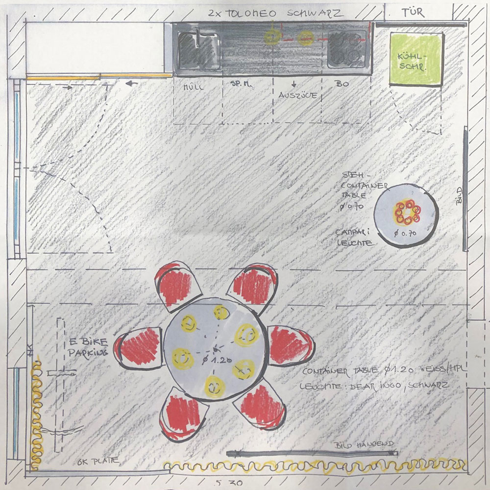 Umbau und Neugestaltung Sozialraum Gewerbekunde. Einrichtungskonzept von Atelier Lamisse.