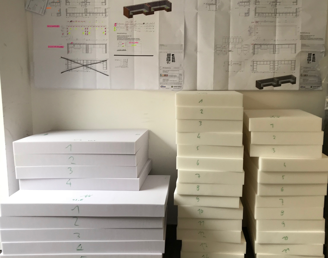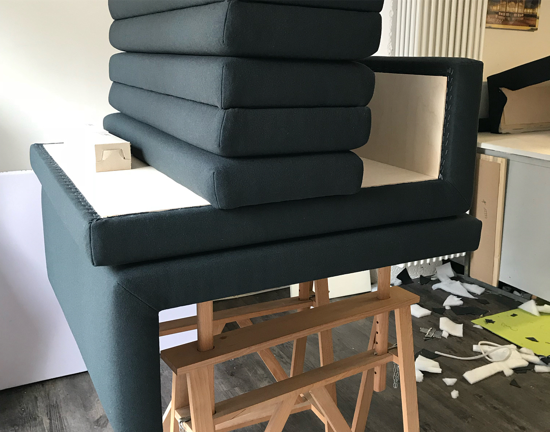 Polster-und Bezugsarbeiten für eine Sonderanfertigung der Sitzmöbel einer Kantine
