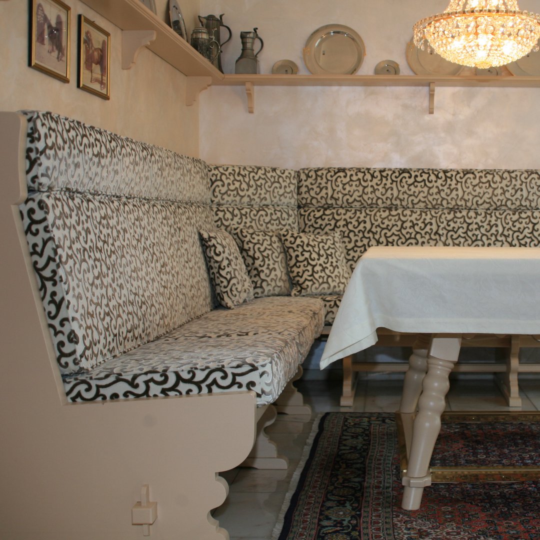 Polster- und Bezugsarbeiten einer fest eingebauten Eckbank.