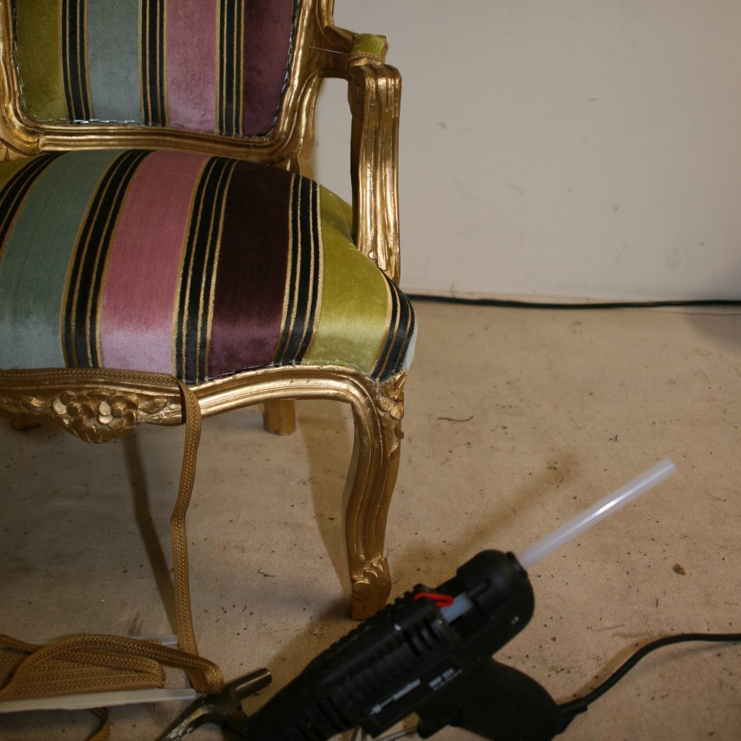 Klassische Polsterarbeit: Kindersessel mit Afrique und Rosshaar gepolstert und neu bezogen.